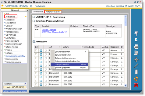Auch bei Causen-Info im Reiter Akt ist die Dokumentvorschau verfügbar: