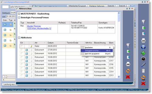 Sie haben auch die Möglichkeit sich in der Aktvorschau (Strg+I) die Dokumente in der Dokumentvorschau anzeigen zu lassen: