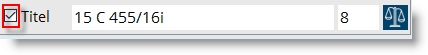 Aktivieren Sie die Checkbox, erscheint ein weiteres Eingabefeld, wo die Geschäftszahl des Titels sowie das zuständige Gericht eingeben werden können. Aus Platzgründen wird nur die Gerichtsnummer, nicht der -Name angezeigt. Bitte fügen Sie das zuständige Gericht über die Gerichtssuche
