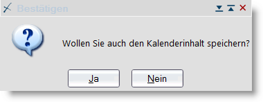 Hierbei werden Sie nun immer zusätzlich sicherheitshalber gefragt, ob auch der Kalenderinhalt gespeichert werden soll.